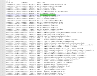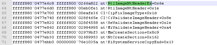 It then calls the "SeValidateImageHeader" function to validate the code integrity of the executable. SeValidateImageHeader itself calls into CI.dll, where "RtlImageNtHeaderEx" is finally called. See, Call stack in image below.