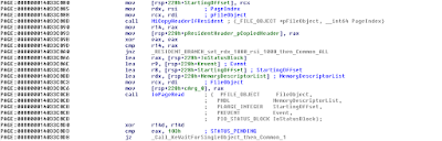 1) It first starts with a call to "FsRtlGetFileSize()" function to get the file size of the input executable. If it is is above 0xFFFFFFFF bytes, the call fails. Now, we know the input executable must be below 4GB.